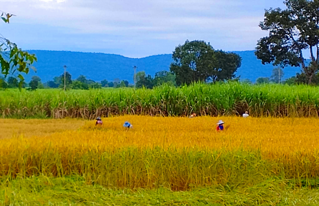 Rice cutting season has arrived in rural Isaan to the joy of all the villagers that depends on these jobs.